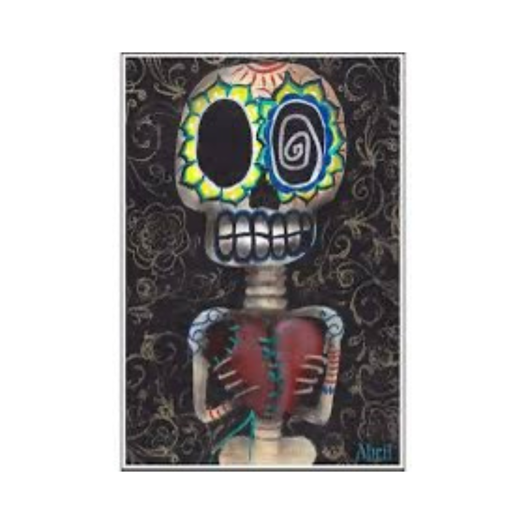 Step into the colourful world of Abril Andrade with Toma mi Corazón, a striking print that blends vibrant Day of the Dead iconography with a bold, contemporary twist. Featuring a sugar skull with a visible heart and ribcage, the piece celebrates life, memory, and imagination in Andrade’s signature vivid style. Printed on high-quality paper, each unframed print is individually wrapped and stamped for authenticity, making it a captivating addition to any collection