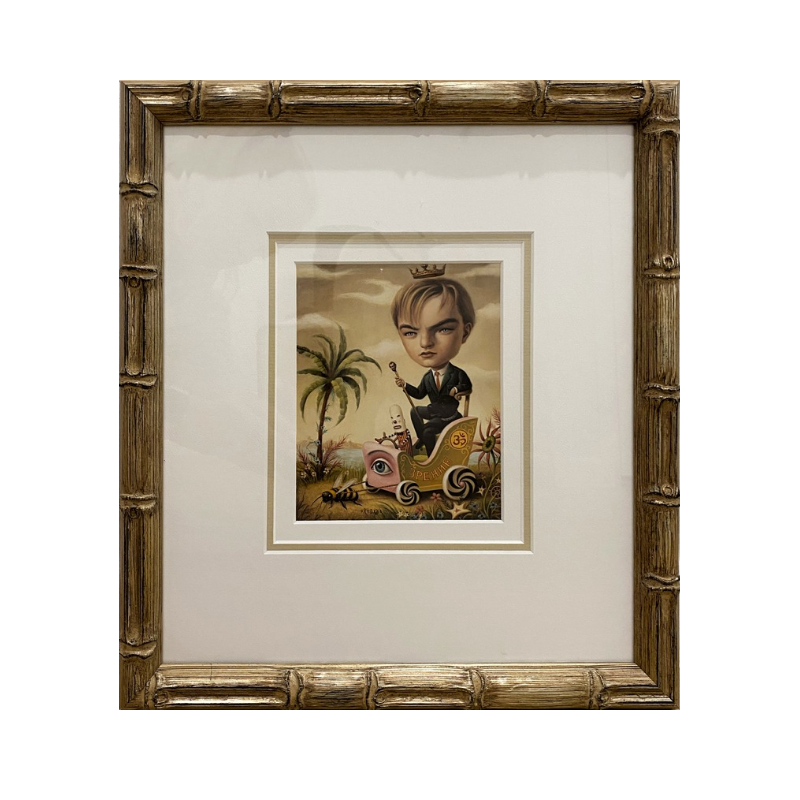 Mark Ryden artwork featuring none other than Leonardo DiCaprio himself. And the presentation is just as amazing as the subject. It's framed in a stylish bamboo-style frame and triple matted. The size of the entire piece including the frame is 345mm × 315mm. This combination of Mark Ryden's talent and Leonardo DiCaprio's presence makes it a real gem for any art lover