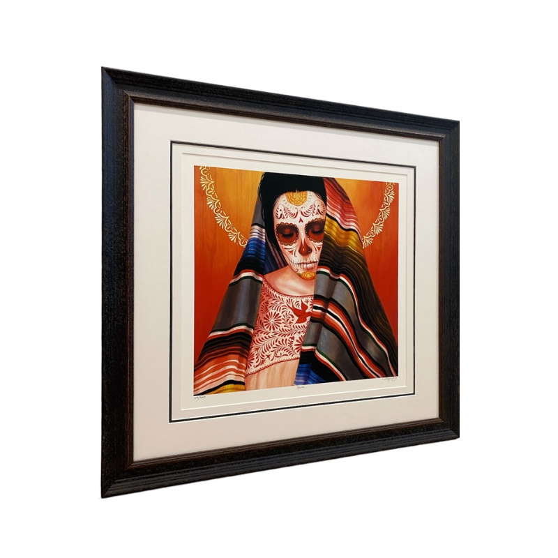 Framed in a rustic Italian timber frame and double matted adding a touch of warmth and charm to her haunting and seductive portrayals. Size is approximately 69cm x 69cm
