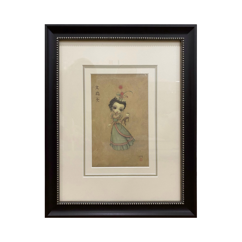 This captivating piece, Girl and Monkey by Mark Ryden is elegantly framed in a striking elegant frame. The artwork is triple-matted, enhancing its depth and highlighting Ryden's signature blend of innocence and surrealism. The intricate framing adds a vintage flair, perfectly complementing Ryden's whimsical and thought-provoking composition. A truly unique addition to any collection