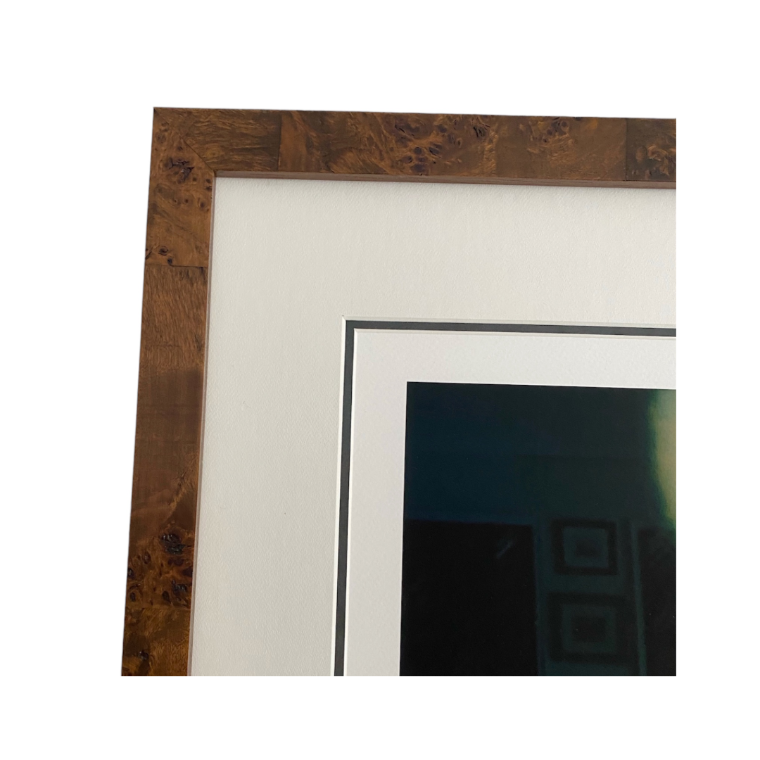 This limited edition print by Gill Del-Mace is absolutely stunning! It comes framed in a high-quality walnut Burl timber frame, double matted, and glazed with UV70 for added protection. With only 250 prints available, it's a real collector's item. The framed size is approximately 680mm x 1130mm, making it a statement piece for any wall. It's also ready to hang, so you can enjoy it right away.