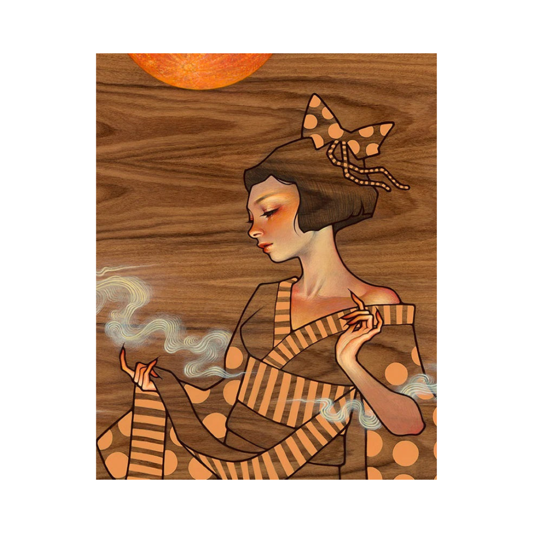 Audrey Kawasaki is an incredible contemporary artist known for her mesmerizing and otherworldly paintings. Born in LA in 1982 her art blends realism with dreamy and slightly surreal vibes. She's all about delicate, porcelain-like young women. Kawasaki works her magic with graphite and oil on wood panels, giving her pieces a unique texture. Her art has gained major recognition and she's exhibited internationally. Kawasaki's style is a beautiful mix of traditional techniques and modern aesthetics, making her a standout in the lowbrow and pop surrealist art scenes.