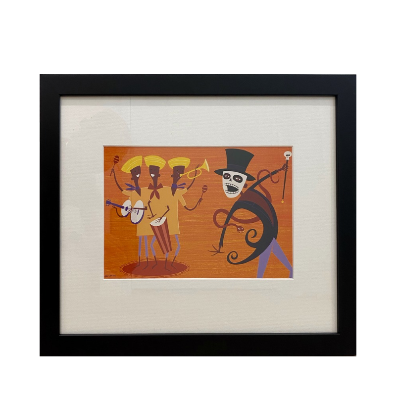 Shag (Josh Agle)’s Baron Samedi captures the vibrant and mysterious essence of the iconic Vodou spirit of death. With his signature mid-century modern aesthetic, Shag combines bold colours, sharp lines, and retro stylization to bring this captivating figure to life. The artwork’s playful yet eerie vibe draws viewers into a world where mythology meets modernism, making Baron Samedi a compelling and eye-catching addition to any collection. Shag’s unique approach creates a striking blend of mystique and charm that is both timeless and fresh